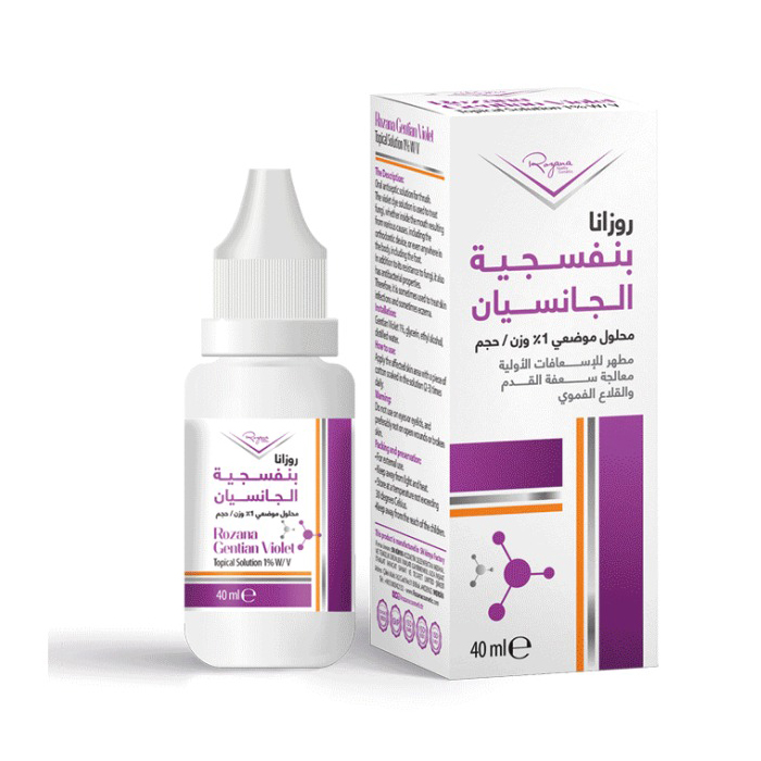 Rozana Gentian Violet est une solution antifongique et antibactérienne couramment utilisée pour traiter les infections fongiques telles que la candidose et les affections cutanées telles que la teigne.